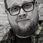 Inside is a perfect scene of rustic charm ripped from a Bob Ross painting–a weathered barn, looming pines, a wagon loaded with feedbags, and a man in a blue bomber jacket frantically banging on the glass. Looking closely, Cotrìona sees his tiny mouth moving rapidly, though all she hears from him is silence. She smiles.